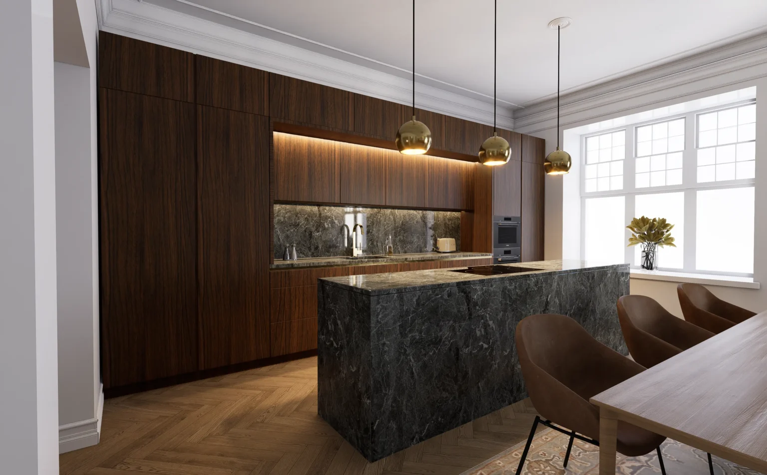 Bathrooms and kitchens need significantly more detailing and precision. For clients who want these spaces fully resolved before ordering.